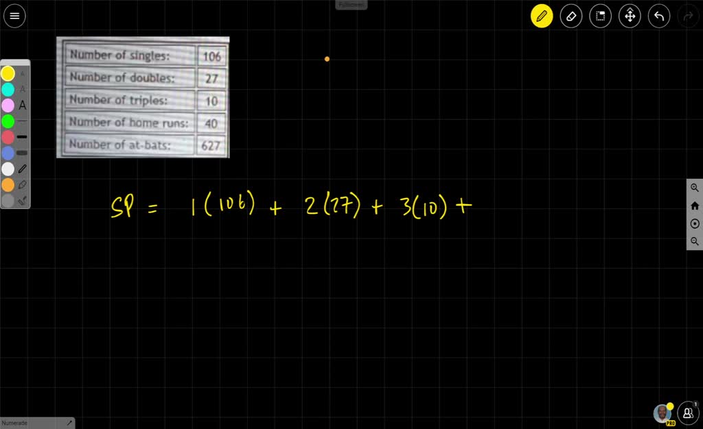 If A Player Has 58 Singles 8 Triples And 39 Home Runs With 367 At Bats What S The Players Slugging Brainly Com